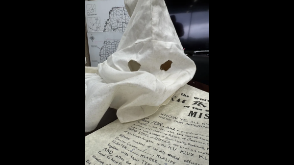 So, the Mississippi Department of Public Safety says it stumbled across a Ku Klux Klan robe, handbook, membership lists, and propaganda while cleaning out a closet...